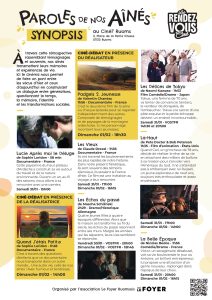 Agenda Le ciné7 vous invite au festival “Paroles de nos aînés – Témoignages de vie” du vendredi 30 janvier au dimanche 7 février, en présence des réalisateurs Sophie Loridon et Valentin Chanéac.